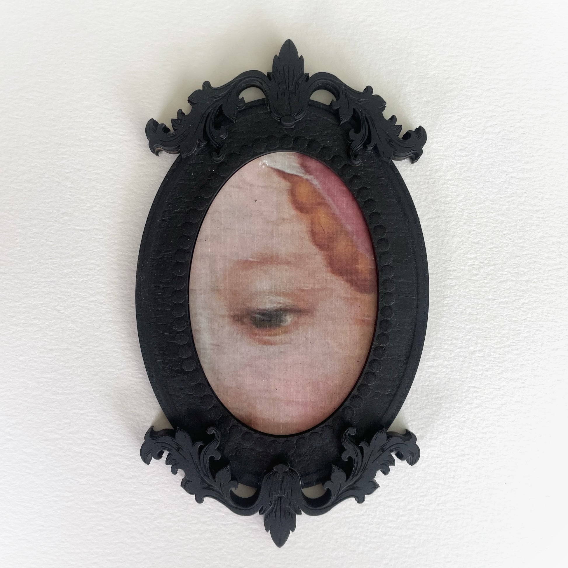 Inspired by the intimate “lover’s eyes” portraits of the 18th and 19th centuries, these framed eyes evoke the timeless elegance and hidden charm of a bygone era. Imagine a time when lovers exchanged secret tokens of affection, their eyes painted in miniature portraits to be cherished in secrecy.