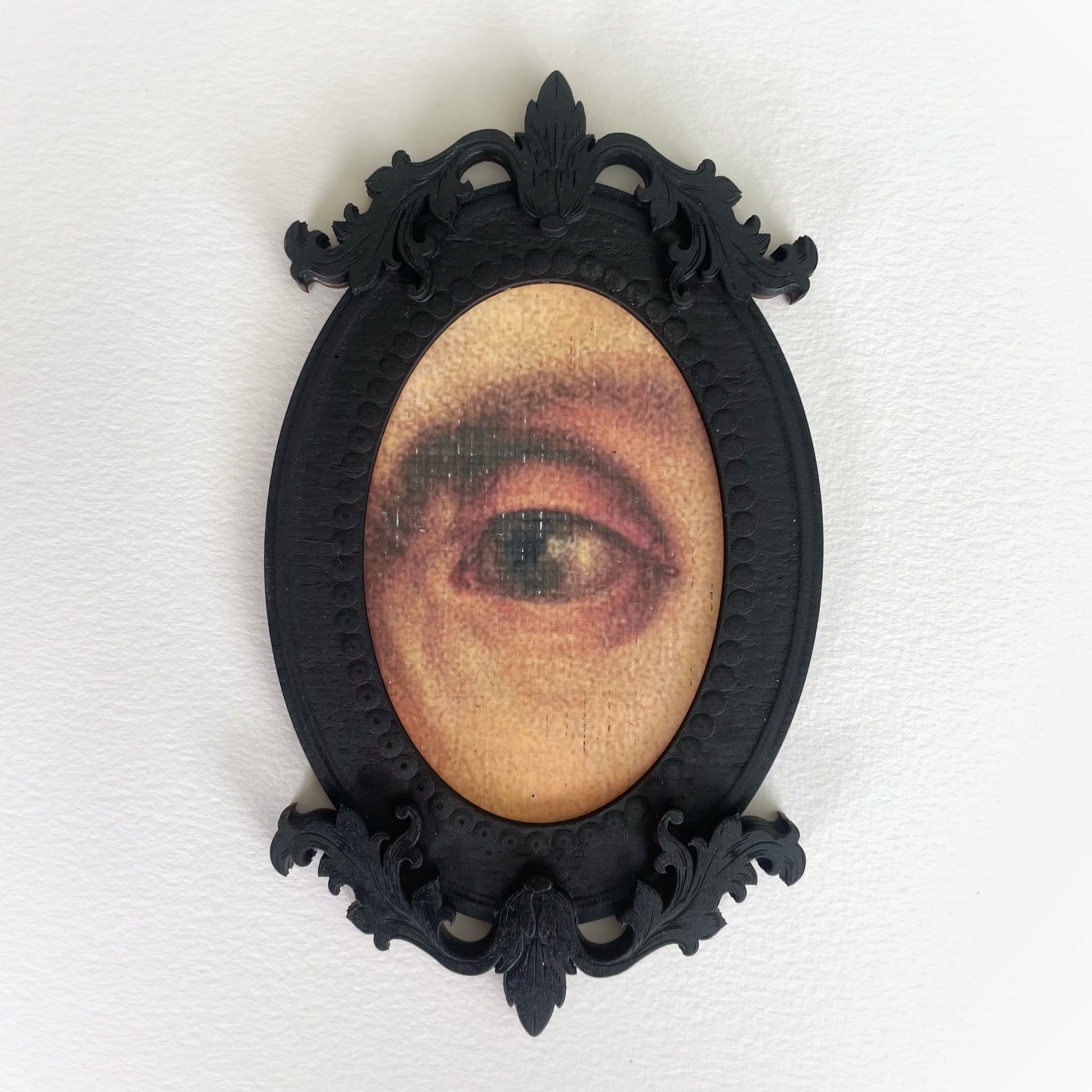 Inspired by the intimate “lover’s eyes” portraits of the 18th and 19th centuries, these framed eyes evoke the timeless elegance and hidden charm of a bygone era. Imagine a time when lovers exchanged secret tokens of affection, their eyes painted in miniature portraits to be cherished in secrecy.