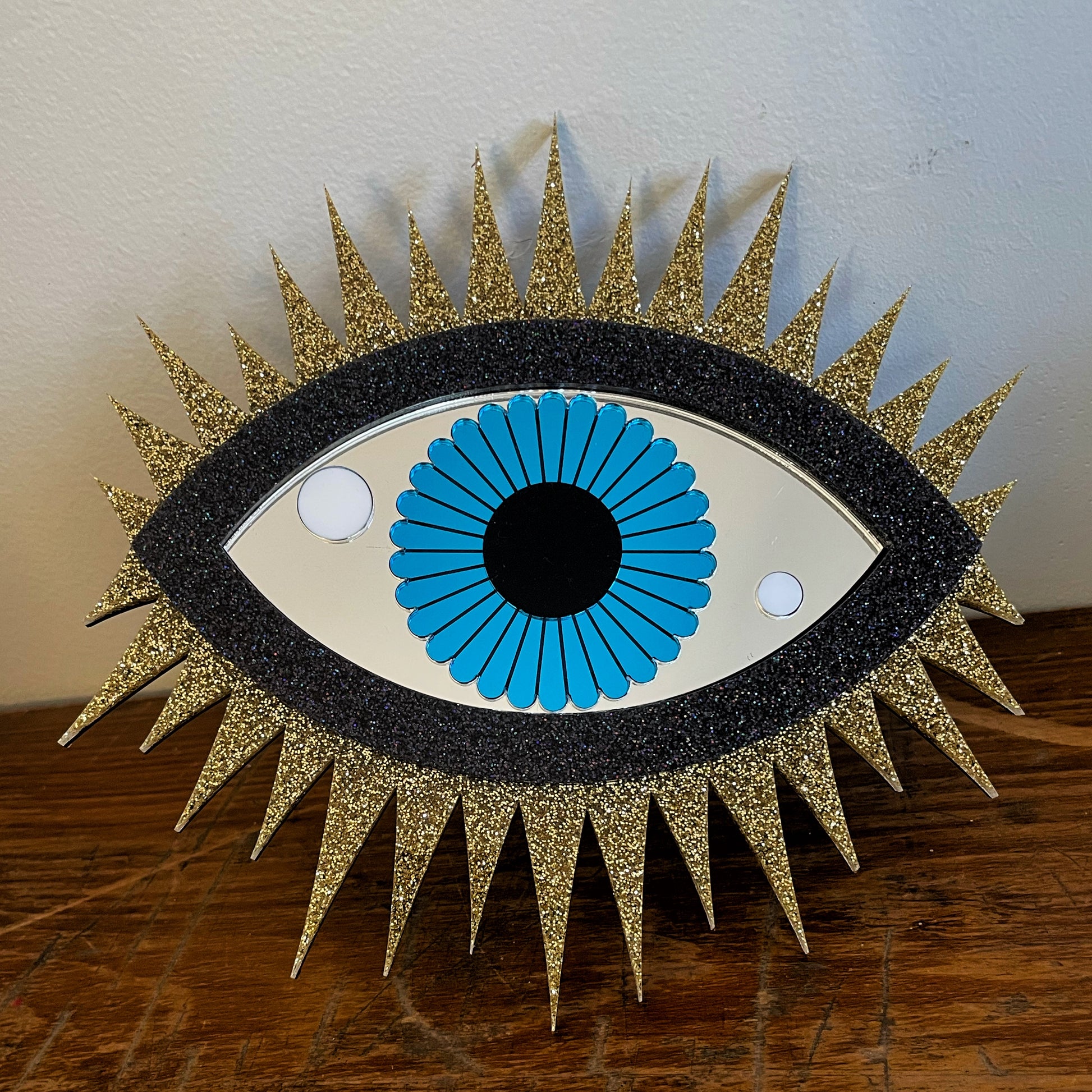 Large Acrylic Wall Hanging. Made from different coloured mirrored acrylic and beautiful glitter acrylic. Designed, lasercut and assembled in house by Apothecurius.